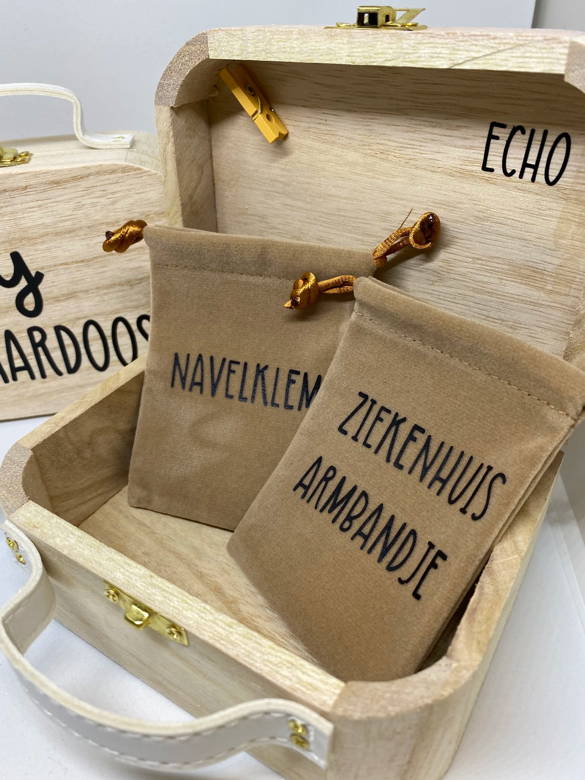 - Zakjes voor het navelklemmetje en het ziekenhuis armbandje