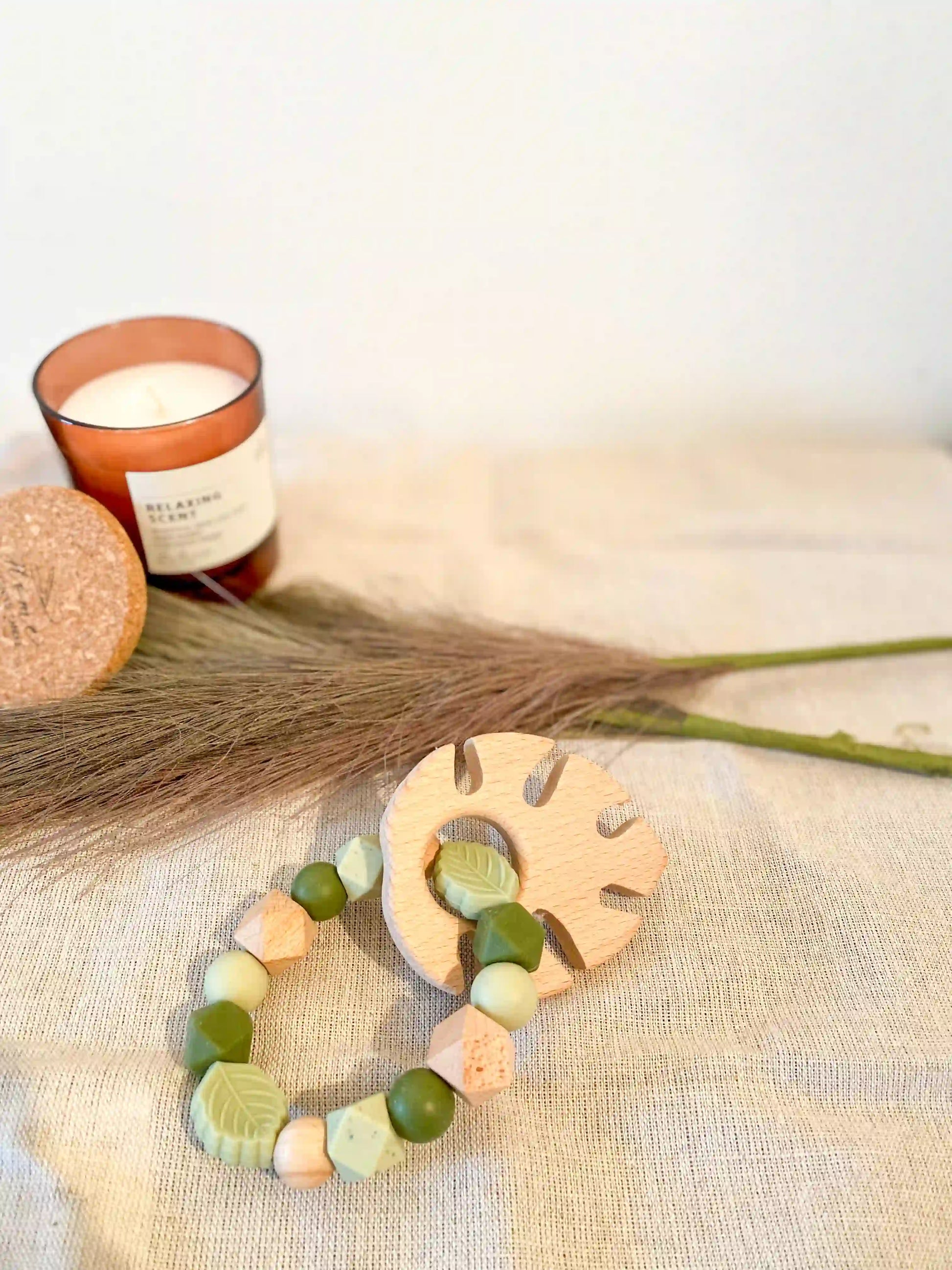 De bijtring (inclusief houten onderdelen) kan ook in de koelkast worden geplaatst om je kleintje te helpen met pijn of ongemakken tijdens het tandjes krijgen.