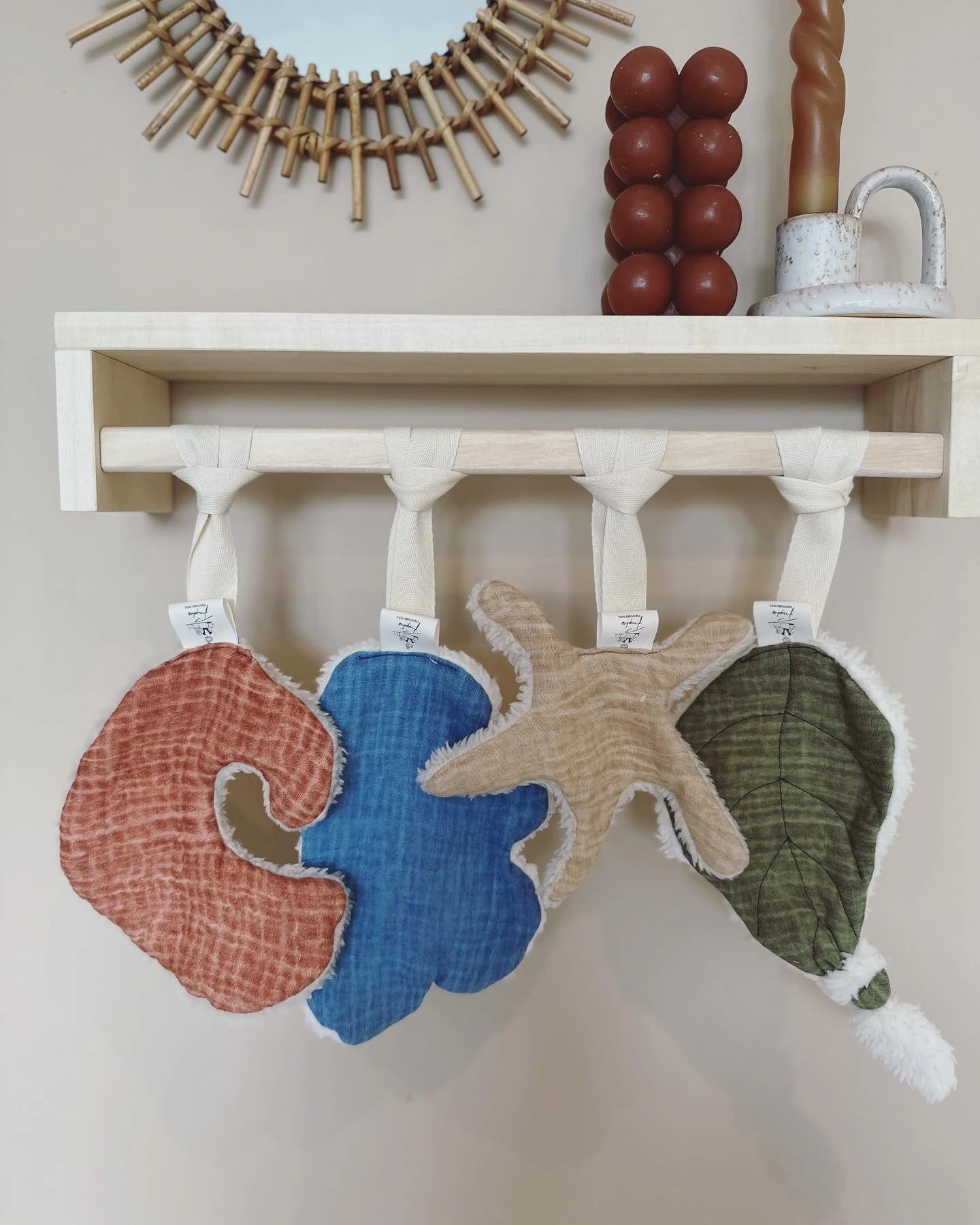 Ontdek onze 4 nieuwe speendoekjes genaamd; Wolkje, Moon, Zeester & Jungle Leaf, Elk speendoekje is uniek en geïnspireerd op de prachtige elementen van de natuur.